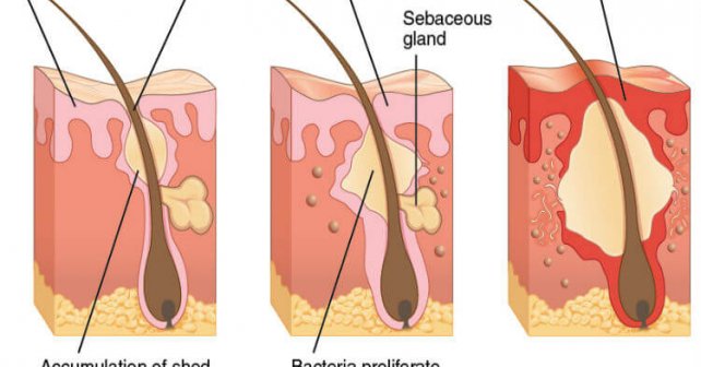 Quando as bactérias estafilocócicas infectam os folículos pilosos surgem pápulas vermelhas e doloridas, características de furúnculos e carbúnculos. Com o passar do tempo, as pápulas enchem-se de pus e crescem, ficando mais doloridas e, no estágio final, rompem e vazam uma secreção purulenta. O furúnculos menores normalmente não deixam cicatrizes. O carbúnculo (aglomerado de furúnculos) e os furúnculos grandes, por serem mais profundos e graves que um único furúnculo, costumam deixar cicatrizes.