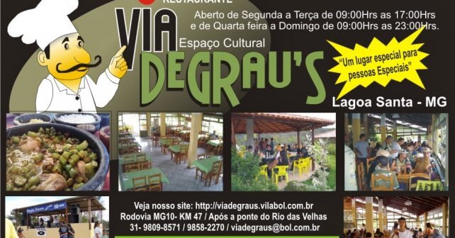 O Restaurante e espaço cultural Via Degraus acaba de lançar uma ótima pedida musical e gastronômica para começar bem o mês de dezembro. Estará promovendo no dia 16 de dezembro a partir das 22:00 h em suas dependências um grande show FACA AMOLADA de MPB . Se avaliarmos a grande vivência musical de seu proprietário Marcos Assumpção, responsável por grandes e inesquecíveis eventos sazonais e qualidade da cozinha do Via Degraus esta noite promete e justifica um agendamento para comparecer no local que fica logo após a cidade de Lagoa Santa em direção à Serra do Cipó. No domingo muitas opções, visitar a Lapinha, uma volta pela Serra do Cipó com suas cachoeiras e sua paisagem mística e envolvente, almoço no Restaurante Piraquara de meu amigo João e você terá uma recarga de energias para o resto do ano. Estando nas imediações da capital mineira ou mesmo mais distante mas em busca de um final de semana bem especial é só agendar e conferir.