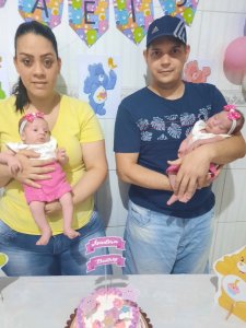 No dia 12 de setembro de 2020 as gêmeas Isadora e Beatriz, filhas do casal Nilson e Carina completaram um mês de seu nascimento e mesmo com a pandemia, receberam uma festa e muitos mimos da família que se uniu presencial e virtualmente para paparicar as aniversariantes que juntamente com a priminha Valentina de 6 meses formam o mais novo “time” do coração da vovó Neusa (foto acima)que radiante compensou a distancia e a saudade com a felicidade de ver a família reunida nesse encontro marcante e inesquecível.
