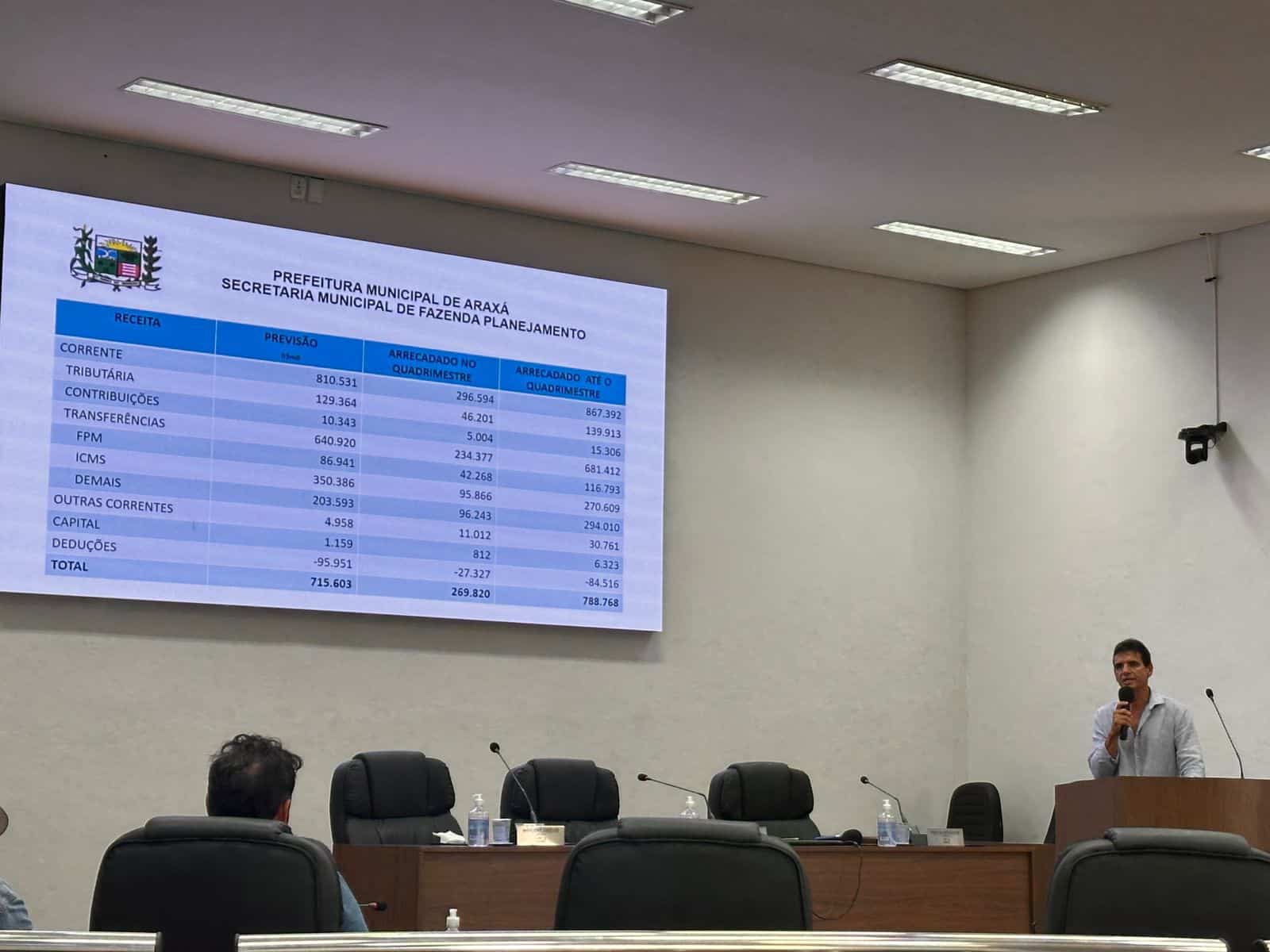A audiência pública de prestação de contas é realizada a cada quatro meses e tem como objetivo garantir transparência na aplicação dos recursos públicos. A apresentação foi transmitida ao vivo pelo canal da Câmara Municipal de Araxá no YouTube, permitindo que a população acompanhasse os dados e a execução orçamentária do município.