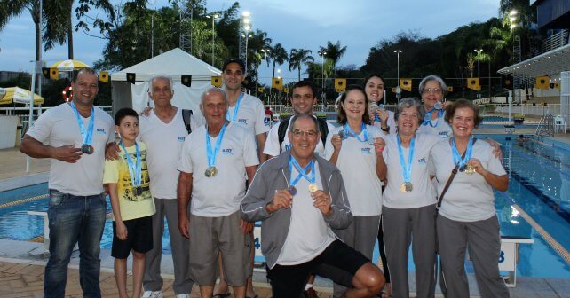 A equipe de nadadores da MANA – MASTERS ASSOCIAÇÃO NADADORES DE ARAXÁ participou neste último sábado (07/10/2017) do VI FESTIVAL MÁSTER DE NATAÇÃO-AR TRIÂNGULO, realizado no PRAIA CLUBE DE UBERLÂNDIA, disputado entre 09 equipes da FEDERAÇÃO AQUÁTICA MINEIRA. Esta é a penúltima etapa antes do Campeonato Mineiro. Os nadadores de Araxá conquistaram 06 medalhas de ouro, 09 de prata e 05 de bronze. Os 11 atletas que disputaram medalhas, foram: Professor Parreira, Aroldo, Gil Montandon, Christina, Luiza Marzano, Maria Antônia, José Esteves – o Kiu, Serginho, Sargento Rodrigo Parreira, Cássia e Maria Patrícia.