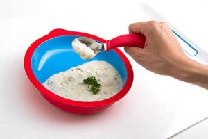 Os itens são feitos a partir de materiais especiais com alta aderência, dificultando ainda mais as quedas de colheres, pratos, copos e alimentos na hora da refeição.