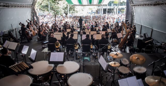 A Filarmônica de Minas Gerais, uma das iniciativas culturais mais bem-sucedidas do país, está em turnê pelo estado e chega a Araxá nos dias 5 e 6 de agosto para duas apresentações. No dia 5, às 15h30, alunos de escolas da região participam de um Concerto Didático no Teatro Municipal Maximiliano Rocha. Já no dia 6 de agosto, o concerto gratuito é aberto a todo o público e será às 20h, também no Teatro Municipal Maximiliano Rocha. Sob a batuta de José Soares, Regente Associado da Filarmônica, a Orquestra apresenta um repertório totalmente brasileiro, destacando a variedade de estilos e as influências das nossas raízes na música orquestral feita no país, com obras de Alberto Nepomuceno, Eleazar de Carvalho, Francisco Mignone, Gilberto Mendes, Guerra-Peixe, Lorenzo Fernandez e Carlos Gomes. As apresentações são gratuitas, sendo que a participação no Concerto Didático é para escolas selecionadas pela Prefeitura de Araxá.
