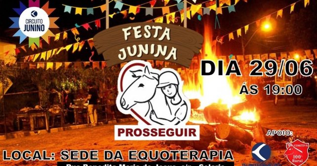 A Associação de Equoterapia Prosseguir, com sede em Araxá, no Alto Paranaíba, realiza nesse final de semana uma grande Festa Junina. O evento acontece no sábado, 29 de junho, Dia de São Pedro, a partir das 19h e tem entrada franca. A festa acontece para arrecadar fundos, visando o término da construção da sede da Associação de Equoterapia Prosseguir, entidade que foi fundada em 2008 e já prestou diversos atendimentos na cidade.