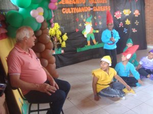 Difícil encontrar palavras para expressar toda a emoção que sentimos com as homenagens, só mesmo quem esteve presente pode mensurar o calor dos gestos, da expressão e da fantasia ali expressados. Algumas pessoas se envolveram mais no trabalho direto com o livro, A diretora Maria Angélica e a vice- diretora Cacilda, que desde o início demonstraram imenso interesse pela nossa presença com o livro em contato com os alunos, as professoras Mirian, Lourdes e Aline que com criatividade envolveram as crianças na leitura e nas atividades desenvolvidas.
