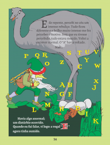 De repente, ele percebeu algo estranho: a vogal A desapareceu. E, por mais que ele tentasse não conseguiu encontrá-la. Teve que se expressar de improviso sem o uso da vogal fujona até conseguir recuperá-la. Mas para seu desespero, quando o A retornou, a vogal E desaparece. Diante desse sufoco, nosso apavorado amiguinho vai se desdobrando na criatividade para suprir cada uma das vogais enquanto tenta recuperar uma a uma.