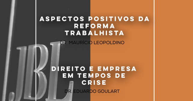 Palestras gratuitas “Aspectos Positivos da Reforma Trabalhista” e “Direitos e Empresa em Tempos de Crise”, com advogados da JBL. Uma ótima oportunidade para responder dúvidas sobre a reforma trabalhista que entra em vigor a partir de novembro/2017.