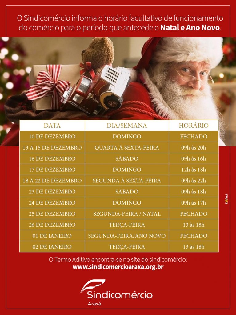 Horário de funcionamento do comércio para o Natal e Ano Novo