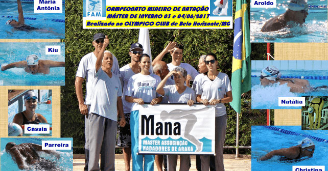 A equipe de nadadores da MANA – MASTERS ASSOCIAÇÃO NADADORES DE ARAXÁ, conquistou, brilhantemente, o 4º lugar na classificação geral do CAMPEONATO MINEIRO DE NATAÇÃO MASTER DE INVERNO 2017