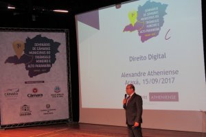 Em seguida, Alexandre Atheniense abordou o tema Direito Digital e Internet, falando das modernidades atuais e da necessidade de o agente público estar ciente e por dentro das novas tecnologias, que podem e devem ser usadas a favor do mandato e dos serviços prestados com qualidade para a população. Ele ainda alertou para os riscos que todos estão expostos ao fazerem uso da rede, para fins pessoais e profissionais.